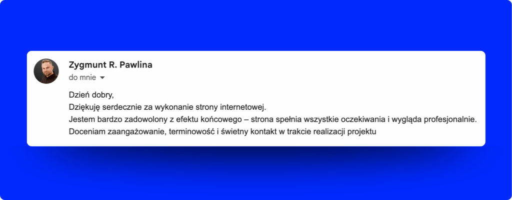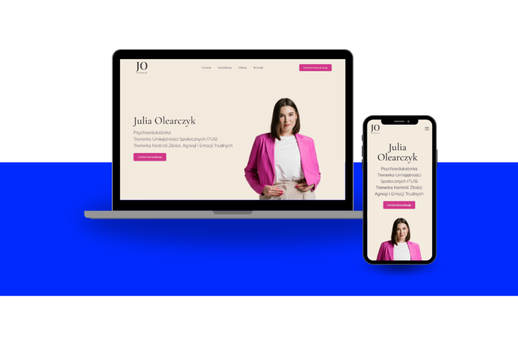 Podczas bezpłatnej konsultacji ustalimy, jak powinna wyglądać Twoja strona internetowa, aby skutecznie przyciągała klientów. Jeśli zdecydujesz się na współpracę, zajmę się wszystkim – od projektu po wdrożenie.